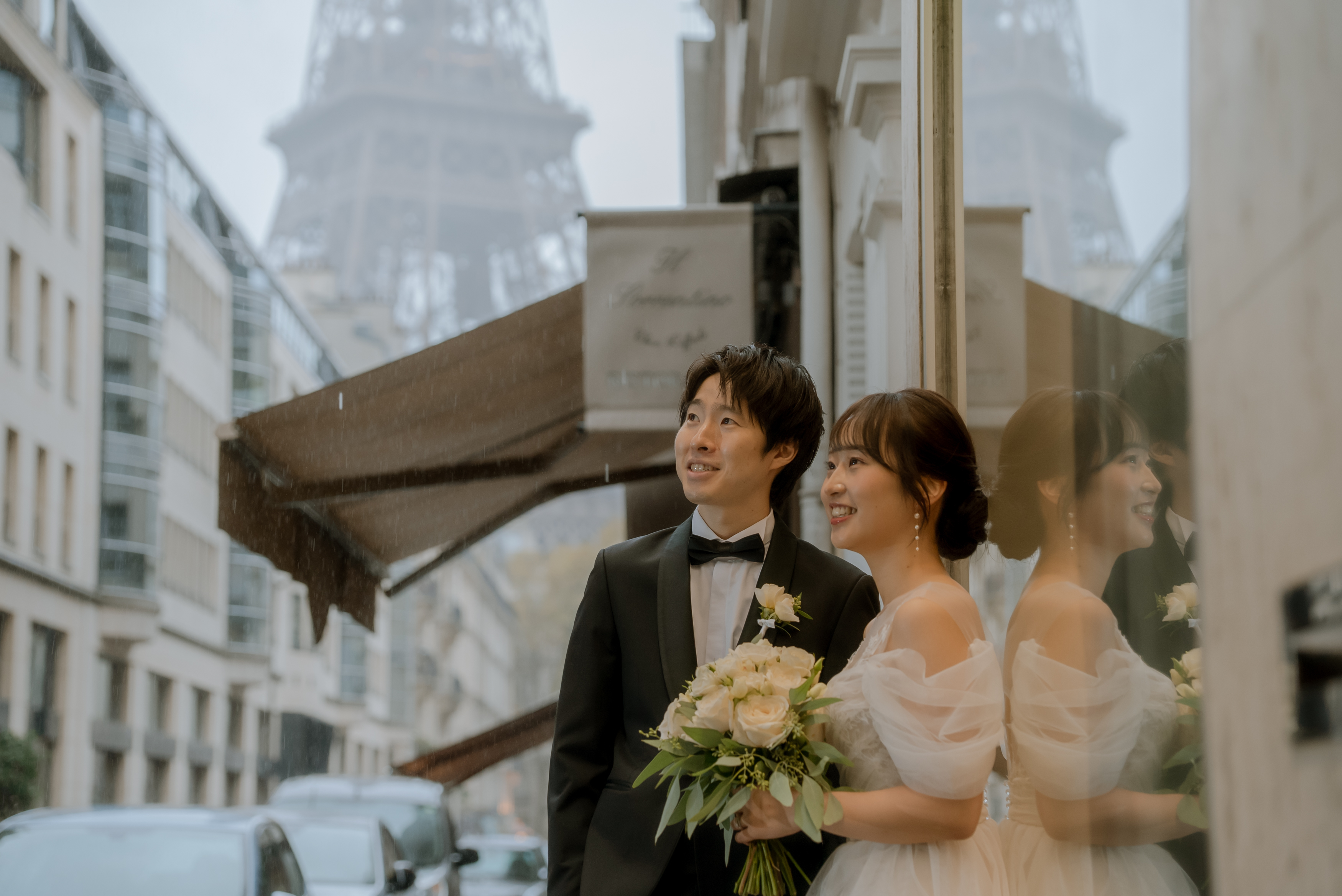 秋の小雨もパリっぽく、パリフォトウェディング!